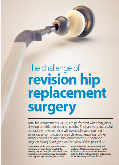 Mr Sood was asked to write an article for Arthritis Today Magazine to inform its readers about revision hip replacement surgery.